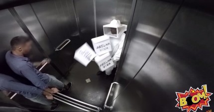 電梯裡這個防護衣男子端著裝蜜蜂的盒子不小心打翻時…想出這個惡作劇的人真的應該被抓去關!
