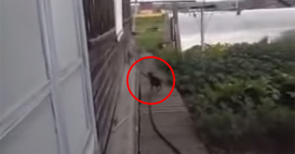 狗狗很久都沒有把丟出去的球撿回來,主人去看的時候竟看到狗狗扛著一隻貓咪…