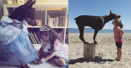 媽媽看小女兒和狗狗每天24小時都黏在一起,逼不得已只好拍下這一系列超可愛「甜心與野獸」的照片。