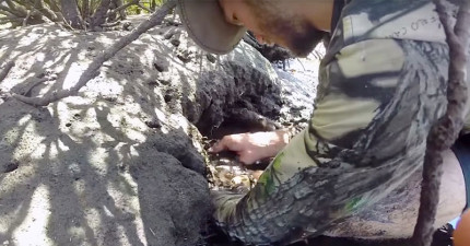 他在潮間帶撥開泥土後找到了一隻「你一定不敢徒手抓」的可怕生物。