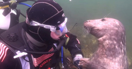他在海中遇見這隻「想要被搔肚肚」的淘氣海豹,當開始摸摸時…怎麼跟狗狗一樣啊?!