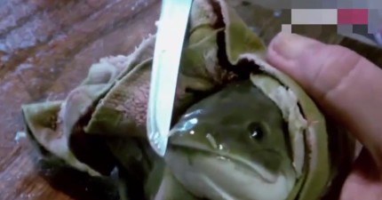 她做菜做到一半突然發現,這顆「半小時前切下的魚頭」居然還在找機會逃命?!