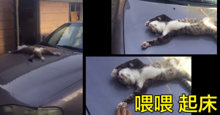 網友準備叫醒這隻「睡成大字型」的流浪貓,戳戳他後卻發現…流浪貓居然會賴床?!
