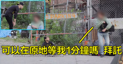 男子給了街友一點錢以後,街友卻向他要求更多…像是「等他一分鐘」。