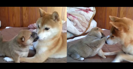 1個月大小柴犬一直找媽媽「單挑」,發現打不贏的可愛反應讓想QQ!