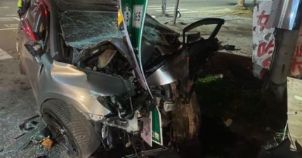 台南重大意外!「路標夾爛」車頭全毀 男駕駛慘死