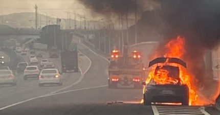 國1驚傳重大車禍!保時捷718整輛燒到剩骨架