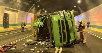 連結車碧潭隧道內「自撞翻覆」全線封閉 駕駛酒駕「嚇到尿褲子」