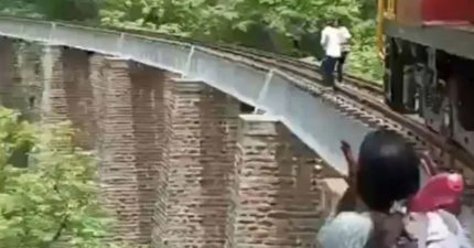 小夫妻鐵軌忘情拍照「沒看見火車來」 絕望「雙雙跳下27公尺高深谷」