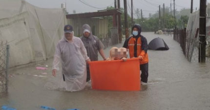 屏東路地變汪洋「居民坐水桶脫困」 挖土機都被淹!驚恐畫面曝