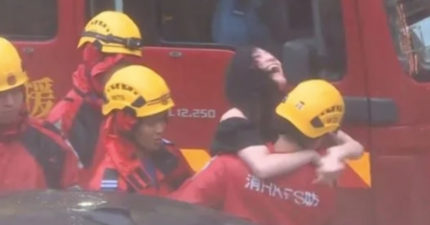 長髮正妹受困大雨!見消防隊員救援「燦笑開腿夾緊」 網紅被指認親身回應了