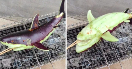 整條「紫色鯊魚」放上烤網烤!7千人看傻:肉是綠色