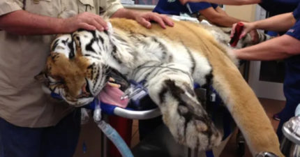 「餓成紙片虎」卻不肯進食!獸醫「剖開老虎肚子」一看…嚇出一身冷汗