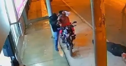 影/2男當街搶劫外送員 豬隊友急開槍「同夥被擊斃」