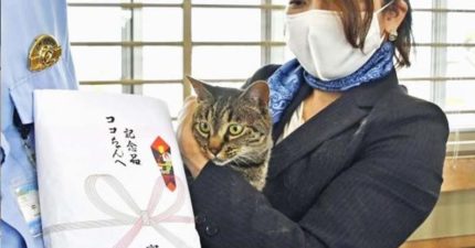 貓皇救出「摔進水溝的老翁」立大功 警局送上「驚喜大禮」致謝!