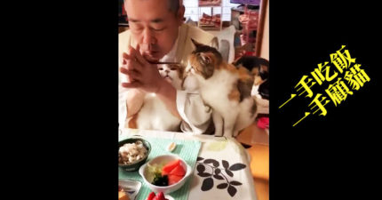 淡定阿北示範「佛系撸貓」絕技 網肉搜大驚:難怪可以做到!