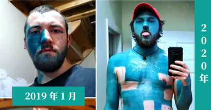 決心要永遠「綠光罩頂」!狂男花3年「幫自己換膚色」挑戰今年完成大業