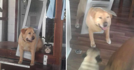 該減肥啦!肥狗勾「穿破狗門」直接掛著走