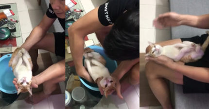 影/爺爺「Pro級示範」幫寶寶洗澡 請出小貓「演嬰兒」太傳神