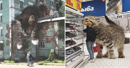 藝術家創造「如果貓咪變超巨大」的怪萌世界 「跟巨貓一起玩雪」畫面太夢幻:想在那裡生活~(20張)