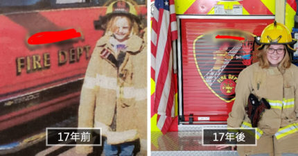 21個「時間是最可怕的小偷」的證據 17年前她只能跟消防車合照…現在她負責開這台!
