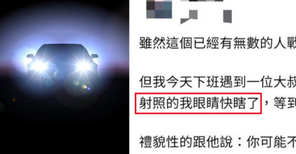 沒品駕駛「狂開遠燈」閃瞎別人 好心提醒被回嗆:我故意的啊!