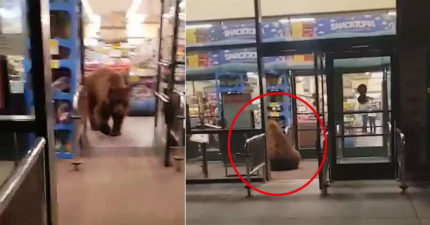 影/逛街驚見「大棕熊血拚」 拿走整包洋芋片…坐店外狂嗑!