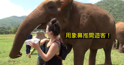 影/遊客開心合影「象媽狠推開」 拖走照顧員:唱搖籃曲給我兒子聽!