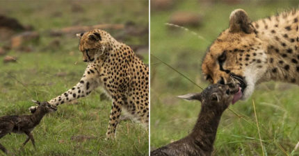 誤認天敵是媽 獵豹「被激發母愛」狂舔蹬羚寶寶!吻到一半悲劇了