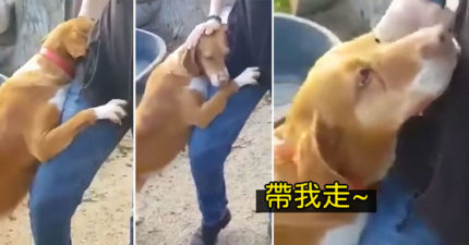 收容所狗狗「緊抱大腿」不肯放 最後「終於得逞」直接被帶出場!