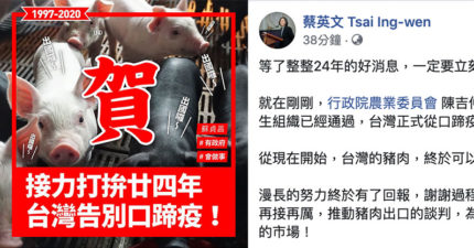 台灣「努力24年」除名口蹄疫 蔡英文秒報喜:今年可外銷了!