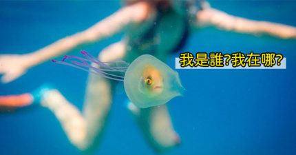 無辜小魚「卡水母身體」臉超驚恐 牠像在「開潛水艇」還能自己控制方向!