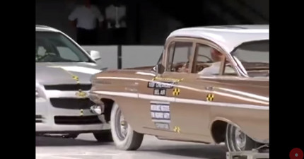 他們讓兩輛「2009年跟1959年的同品牌汽車」對撞,高速相撞瞬間你一看到舊車裡面的人偶就會知道現代車子有多安全了!
