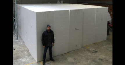 他請廠商運來這個超巨大保麗龍塊,當他的「1:1大小史詩級巨作」完成時真的壯觀到令人說不出話了!