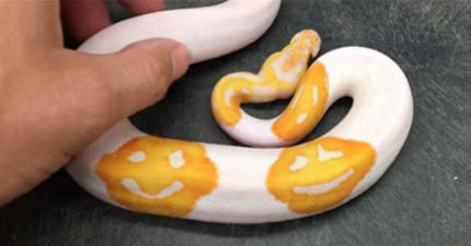 笑一个!球蟒身上惊见「笑脸颜文字」网友直呼太神奇!抓起来超诡异!(影片 )