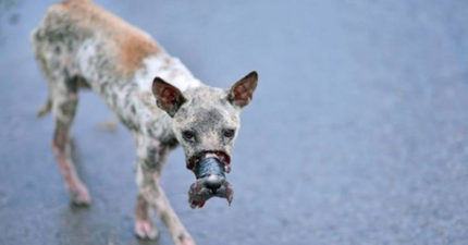 無辜流浪狗遭到冷血人類「用強力膠帶纏繞嘴部」,獸醫一拆下膠帶後「沒肉只剩骨頭」的畫面讓在場的人都流淚了…
