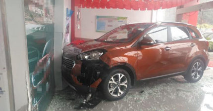 剛交車馬上變事故車,女子誤踩油門把展售中心撞爛,她:右邊不是剎車?