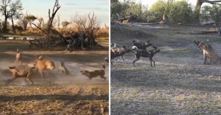 影/大批鬃狗團團包圍 獅媽跳出保護孩子「1個打10個」:你快逃!