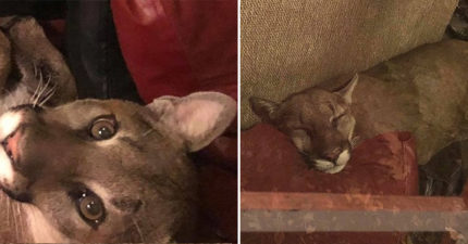 影/山獅誤闖民宅 秒變大貓咪「枕頭堆爽睡6小時」翻肚伸懶腰