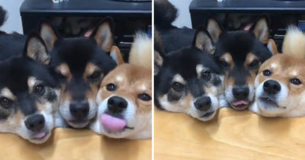 影/柴柴3兄弟超強默契  頭擠頭上演「吐舌3重奏」萌壞!