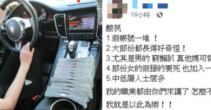 保時捷辣妹炫富「12疊千元鈔塞排檔桿」 PO文狂嗆男人:你們這些窮懶8!