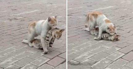 影/虎斑浪浪癱軟在地斷氣 橘貓悲傷「咬起脖子拖走」:兄弟我帶你到安全的地方…