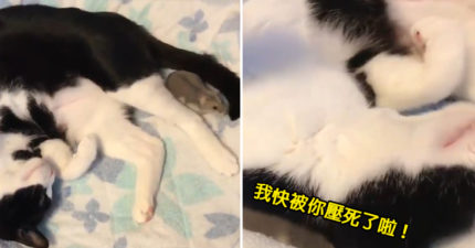 小倉鼠踩賓士貓肉身逛大街 下秒「扭頭壓制」:朕正好需要個枕頭~