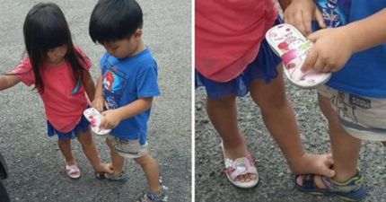 妹妹鞋子進石頭 暖哥哥脫下清理怕妹腳髒「妳踩我!」
