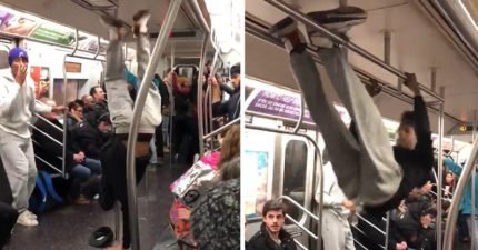 男子突然在地鐵熱身 下秒直接「掛在欄杆上」…把車廂變成最狂舞台!
