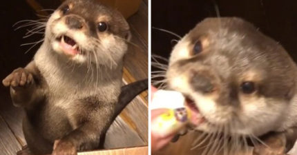 超萌水獺「小手抓緊緊站直」發出可愛奶音討食:快給我吃水煮蛋~