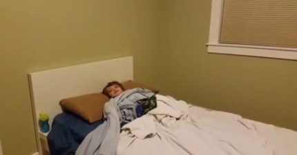 小男孩本來不敢一個人睡,現在關上燈「一秒變閃爍星空」美到他捨不得睡!