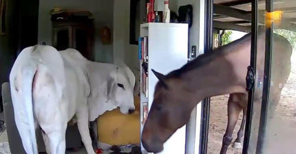 影/寵物狗開門「讓牛馬進屋玩」 主人衝回家表情絕了
