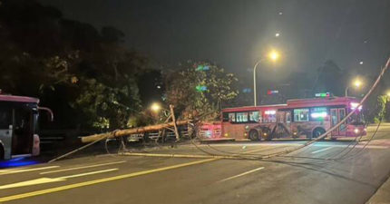 台北公車深夜「撞斷電線桿」 炸出火光!社區大停電
