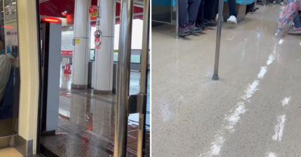 影/台北暴雨「捷運淹成滑水道」 乘客全抬腳搭車